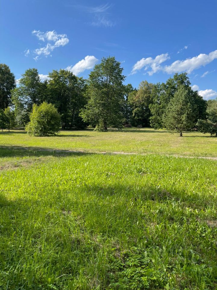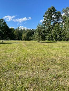 Участок ровный сухой , правильной формы. Также по границе сплошной лесной массив , река Пахра в шаговой доступности .