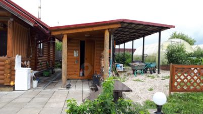 На участке : баня (45,5 кв.м.) с верандой (16 кв.м.), дровник, сарай, навес для садовой техники и инструментов, вольер для собаки, скважина.