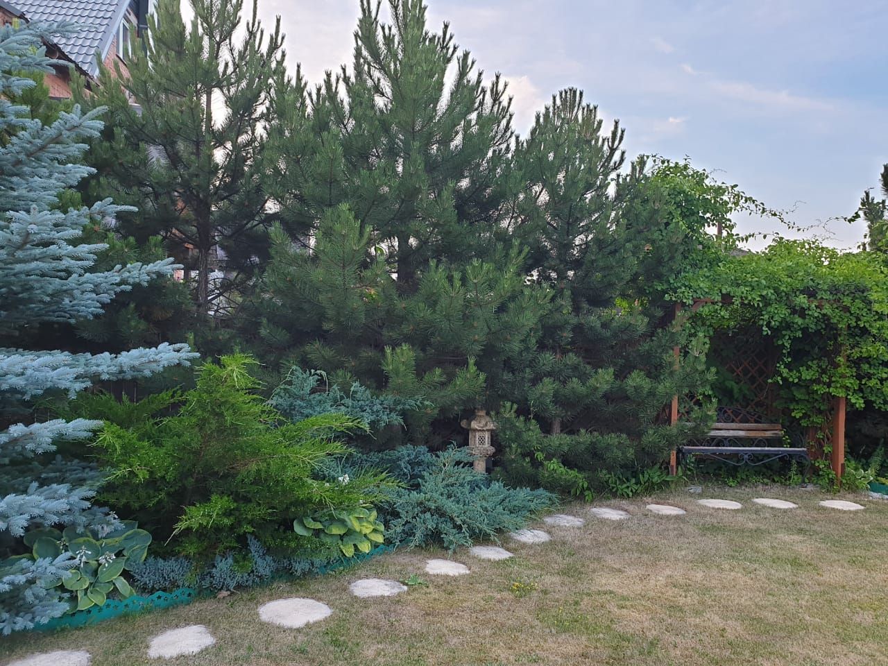 Участок 20 соток, на котором расположены баня, хоз. помещения, фруктовый сад с плодоносящими деревьями и кустарниками, детская площадка, теплицы, грядки, хвойные и лиственные деревья и кустарники, розы и разнообразные цветы.
