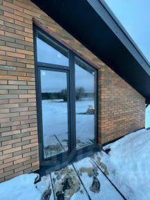 Кровля дома и террасы - кликфальц, цвет чёрный. Водосточная система.