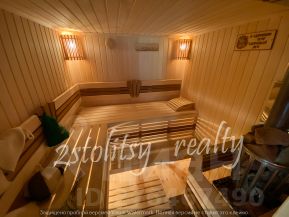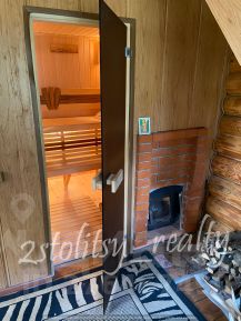 Отдельно стоящая баня 100 квм. сруб с душевой и комнатой отдыха, верандой, отделана в стиле основного дома.