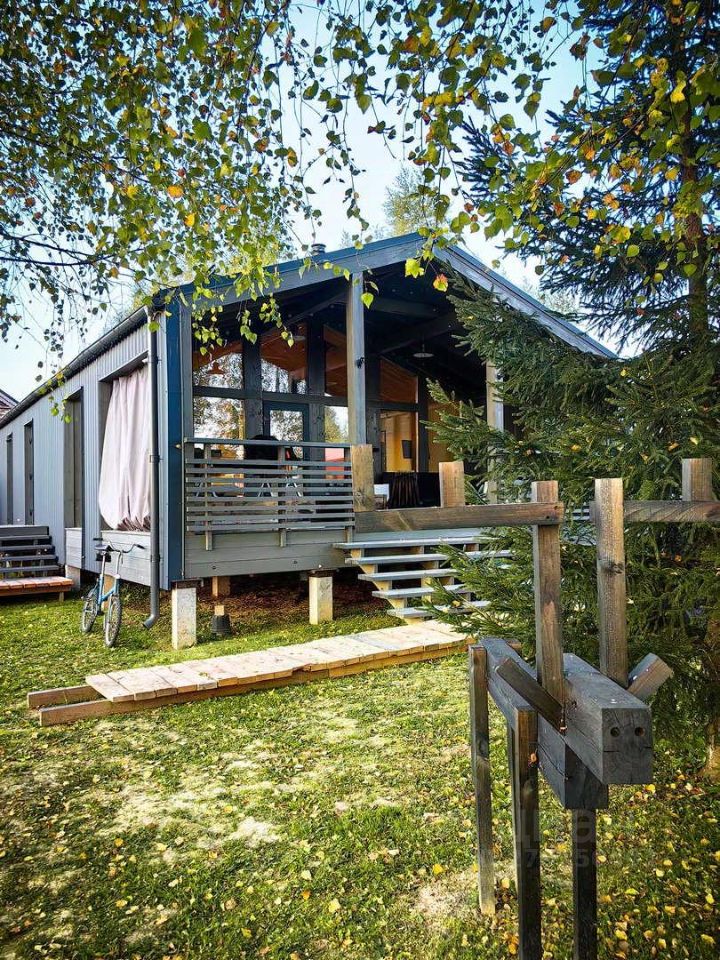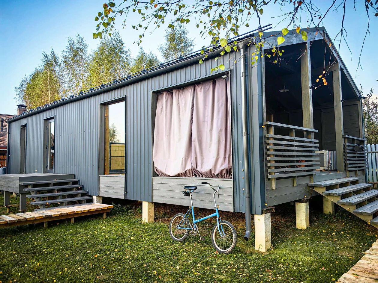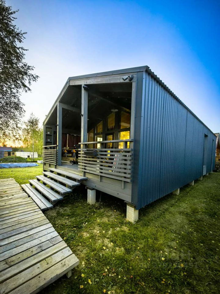 Дом построен в 2020 году по индивидуальному проекту, размеры в плане 6,5 х 12,4 м, общая площадь 75,18 м2, высота потолков от 2,3 до 3,4 м, фундамент из ж/б забивных свай, сечением 20х20 см и длиной 3 м, утепление (ТеплоKnauf Коттедж): кровля и цоколь 200 мм, стены 150 мм, перегородки 100-150 мм, пароизоляция Технониколь Премиум, ветрозащитные маты Белтермо толщиной 50 мм по внешнему контуру, фасады комбинированные, отделаны профлистом Grand Line RAL 7024 и сухой строганной древесиной хвойных пород, окрашенной Tikkurila Valtti Color Satin в два слоя, кровля из профлиста Grand Line RAL 7024 с устройством снегозадержания и водоотливной системы по одному скату, двухкамерные стеклопакеты, безрамные для панорамного остекления и в парной, в остальных комнатах ПВХ профиль, окна в пол, внутренняя отделка по стенам и выполнена из гипсокартона шпаклёванного, но не окрашенного, что дает волю для вашей фантазии и возможность выполнить чистовую отделку на свой вкус, выполнена чистовая отделка пола из шпунтованной сосновой доски толщиной 30 мм по основанию из фанеры, выполнена чистовая отделка потолков из вагонки Штиль, дом зарегистрирован. В доме есть диван, кровать, пара комодов, стеллаж, кухонные ящики в стиле Лофт, 2-х камерный холодильник, на террасе есть диван, кресла, стол, маленький холодильник.
