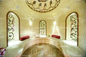 1-й этаж: холл, гостиная, каминный зал, кухня-столовая, столовая, SPA зона: бассейн, хамам, с/у, зона отдыха; зимний сад, комната для охраны, гараж на 5 авто, постирочная, гостевой с/у, комната для прислуги с кухней и с/у, гардеробная комната, с/у.