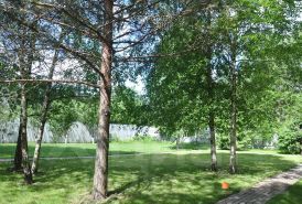 Участок 12 соток: дом-баня 40 кв.м. (1-й этаж: баня, душ, секция для отдыха, 2-й этаж: кухня, комната для гостей), теплица. Выполнены ландшафтные работы, растут лесные и декоративные деревья и кустарники, газон. Участок огорожен забором из металлопрофиля с откатными электрическими воротами.