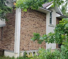 Фасад: "теплая" штукатурка, декоративная штукатуркой "короед" и клинкерная плитка "White hills";