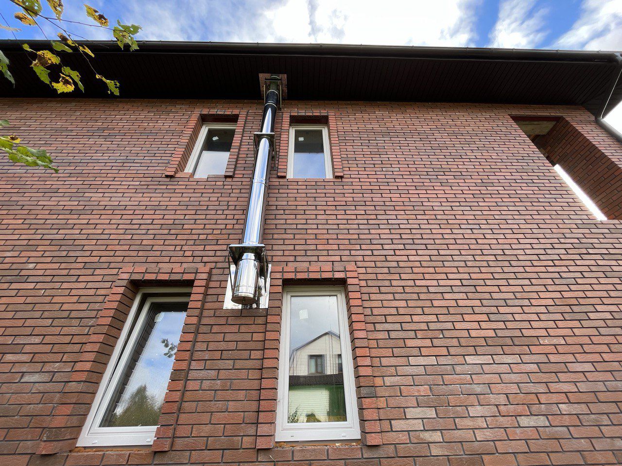 В доме есть система отопления: пеллетный котёл и резервный электрокотел. На фото стоит только котёл, но обвязка и батареи уже смонтированы.