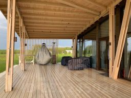 огромная терраса площадью более 70м2, с потрясающим видом, с потолками 5м, застекленная по бокам, с полным комплектом уличной мебели и стационарным мангалом;