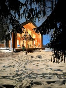 Планируемые улучшения: сейчас дом покрашен наполовину рыжеватой краской, подчеркивающей текстуру дерева.