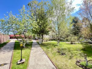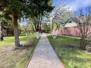 Земельный участок квадратной формы 43 сотки, огорожен капитальным забором, по всему периметру видеонаблюдение, сделан дренаж участка, выложен газон, все дорожки из гранитной брусчатки, выполнены ландшафтные работы.