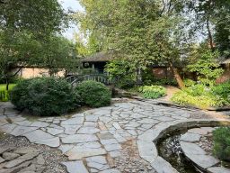 На участке разбит японский садик с зоной барбекю.