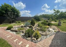 Участок 15 соток, очень красивый и живописный, ландшафтный проект, огорожен забором, ворота на въезд электрические от фирмы DoorHan. Есть мангальная и открытая беседка для вечернего отдыха. Парковка на пять автомобилей и закрытый гараж оборудованный стеллажами и мастерской зоной. (вся техника и инвентарь для обслуживания участка остаётся!)