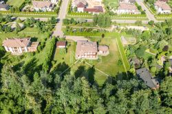 Участок 52 сотки со своим выходом в лес, газон, туи по периметру, крупномеры, кустарники, огражден в едином стиле с поселком, парковка на 3 а/м, гостевой домик (дом для охраны, персонала).