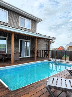 Строительная компания Нафаня Вилладж, специализируется на малоэтажном строительстве, Дома под ключ. Мы предлагаем Вам свой новый дом ОЛИМП с классическими стандартными потолками. Фасадная облицовка Hauberk, в коттеджном поселке ФУТХИЛЛС, расположенный в 35 км от МКАД,2-3 минутах от ЦКАД,10 минут от Ново рижского шоссе и 35-40 минут от МКАД,1 час от Красной Площади (в любое время суток). Дом построен из Сип-панелей на усиленных бетонных сваях. Площадь дома 177 кв.м, в том числе гараж 35 кв.м, на участке 7,5 сотки. Дом расположен на ровном участке правильной формы. Планировка: Просторная кухня-гостиная на первом этаже, кабинет или спальня, хозяйственный блок, ванная комната и витражные окна Rehau. На втором уровне четыре изолированные спальни, ванная комната. По периметру участка установлен забор из металлоштакетника, лицевая часть в шахматном порядке, на въезде ворота с калиткой и навес 6x7. Территория возле дома выложена брусчаткой и залиты отмостки вдоль стен дома. А также есть веранда с уличным подогреваемым бассейном и банькой. Мангальная зона. Подключено электричество, установлен септик ( ЮНИЛОС серии Астра на 6 человек постоянного проживания), подведена вода с центральной общей поселковой скважины + выкопан колодец. -Инженерные коммуникации: В дом заведены все инженерные коммуникации. Разведена электрическая проводка по всему дому (розетки, лампочки, выключатели, щитовая). Разведена сантехника на Двух этажах: унитазы, раковины, душевая кабина) Подключено электрическое конвекторное отопление. -Чистовая отделка: Стены обшиты гипсокартонном (ГКЛ), поклеены обои, натянуты натяжные потолки. Установлены межкомнатные двери, постелен ламинат. В ванных комнатах выложен кафель. Дом полностью укомплектован техникой и мебелью. Заезжай и живи! -Мебель: тумбочки, шкафы, 2 двух спальные кровати и 4 односпальные кровати, кухонный гарнитур, большой диван, маленький диван, стулья, столы Дом очень энергосберегающий, летом-прохладно, зимой-тепло. Покупка дома возможна по льготной ипотеке, как с юридического лица, так и с физического лица!