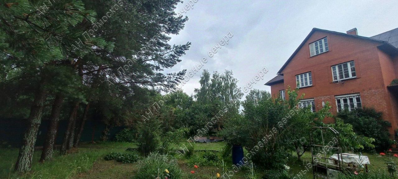 На участке лесные и садовые деревья, кустарники, газон, стоянка, участок огорожен.