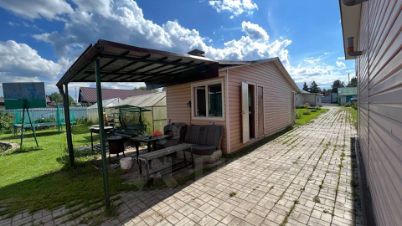 Дом построен из натурального сруба, обшит сайдингом с утеплением. Крыша металлочерепица.