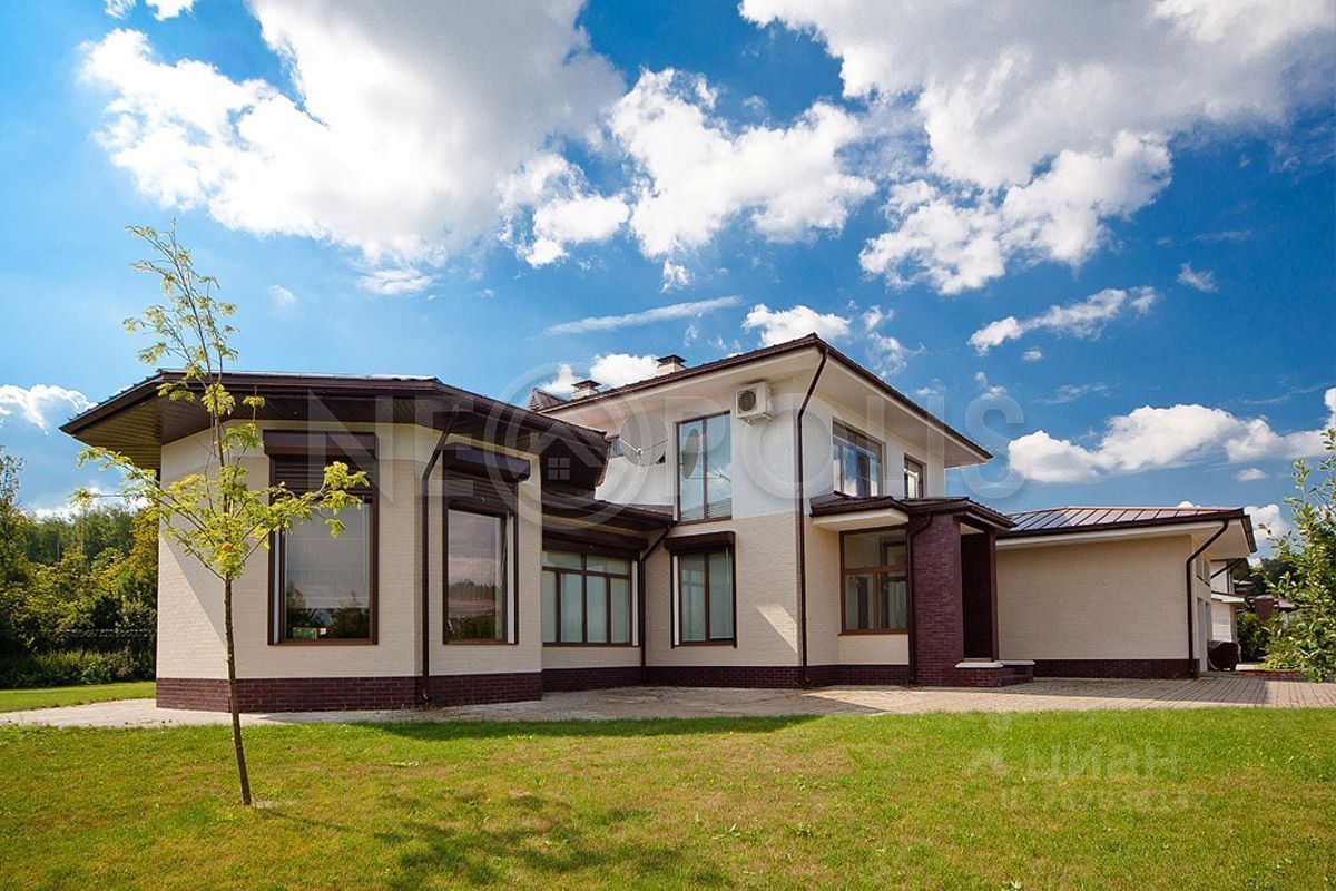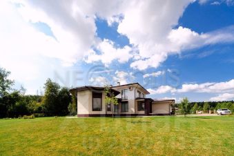 Коттедж в стиле Фрэнка Ллойда Райта, площадью 378.6 кв.м., на ровном, зеленом участке 52 сотки в клубном, охраняемом коттеджном поселке Графские Пруды.