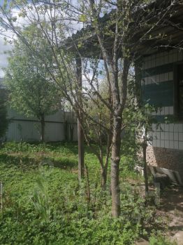 На участки высажены деревья (яблони, сливы, груши) и кустарники.