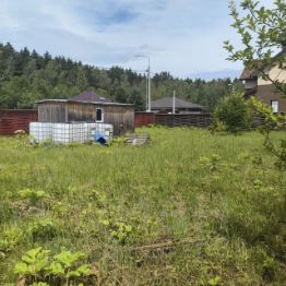 Участок со всех сторон ограждение забором. В собственности с 2014 года. На участке имеются строение (дом с верандой), а так же деревья и кустарники в том числе и плодовые. Строение выполнено из оцилиндрованного бревна, выполнена внешняя отделка.