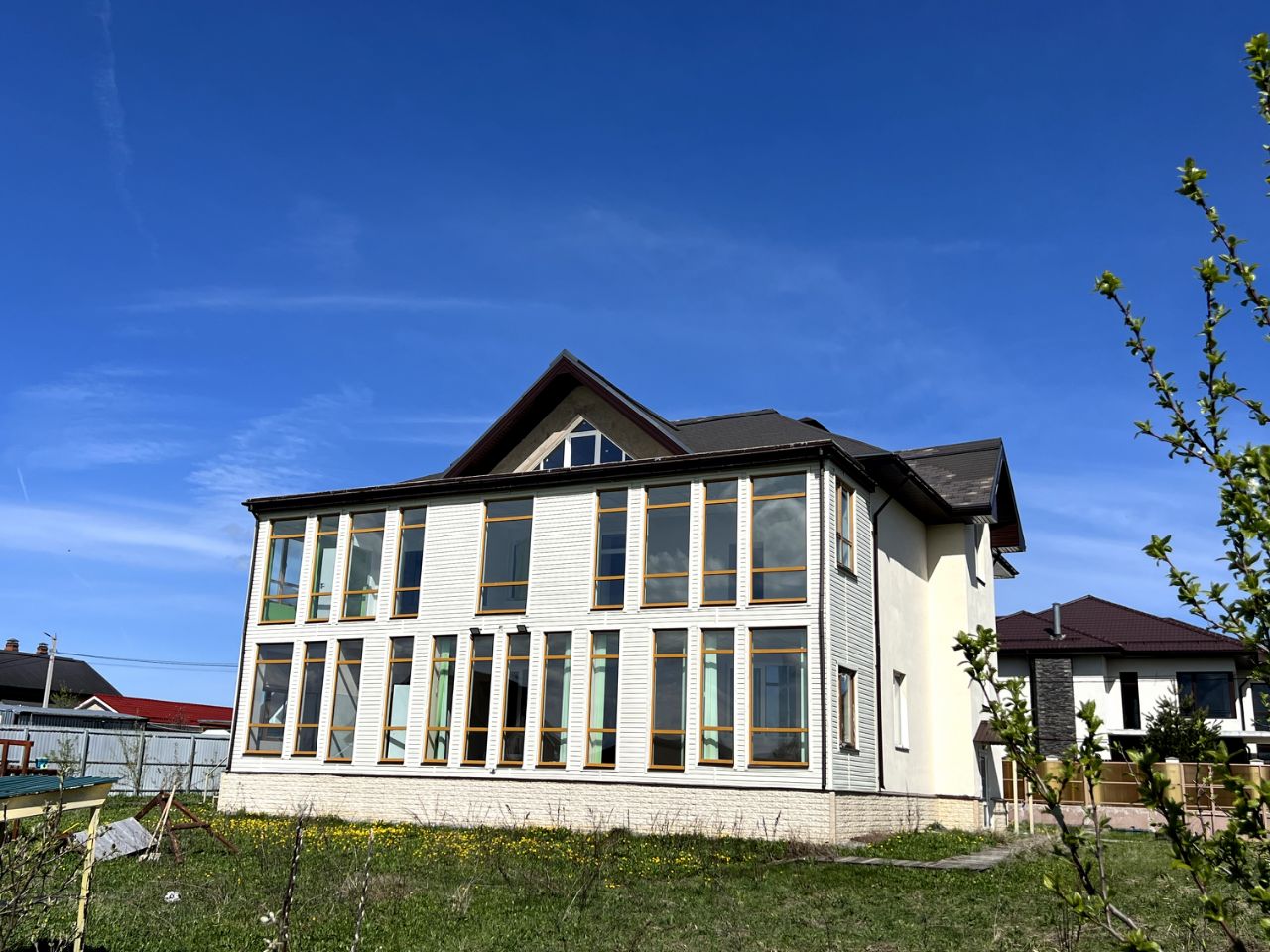 Общая площадь дома 570 кв м. Дом теплый зимой и прохладный летом: стены толщиной 60 см выполнены из кирпича, перекрытия бетонные плиты, крыша гибкая черепица. С южной стены у дома огромная двухэтажная теплая терраса с 20 панорамными окнами. Комнаты просторные, высота потолков 3 м.