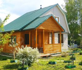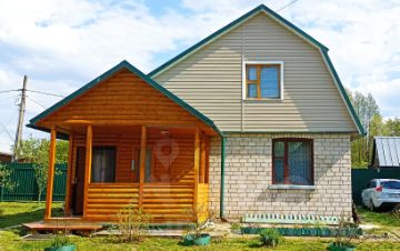 Добротный кирпичный дом с деревянной мансардой, террасой, крыльцом.
