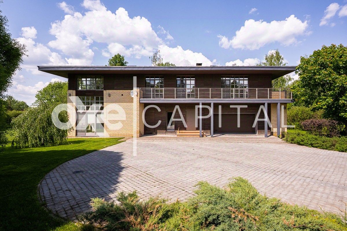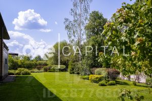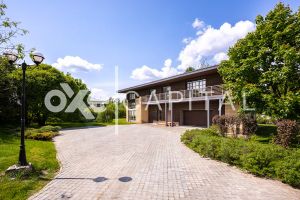 На участке 25 соток выполнен профессиональный ландшафтный дизайн с декоративными деревьями и кустарниками, высажен газон. 1 этаж: гостиная с камином, кухня-столовая, гардеробная, с/у, гараж на 2 м/м. 2 этаж: хозяйская спальня с с/у и гардеробной, 2 спальни (одну из которых можно разделить на 2 спальни), с/у, холл-библиотека. Гараж: в контуре дома 2 м/м.