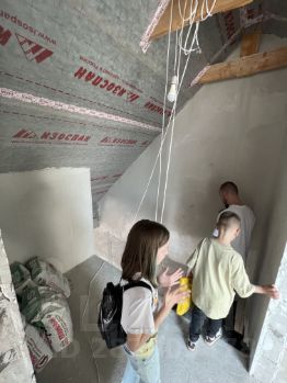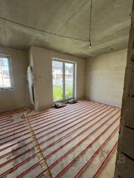 На данный момент, мы находимся в процессе разводки воды и отопления (все радиаторы закуплены, качественный и дорогой Российский бренд Кимрский завод KZTO) Так же закуплены все необходимые нагреватели, инсталляции на 3 этажа. Также установлен каркас лестницы на 3 этаж.