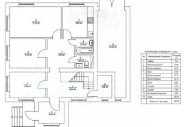 У Дом.а Фундамент - монолитный ленточный, перекрытие 1 этажа - монолитная ж/б плита, второго - уложенный вплотную брус 150х150, стены -шлакоблок, кровля - оцинкованный лист, окна 1 этажа - пластиковые, на втором - деревянные. Высота потолков 3 метра.