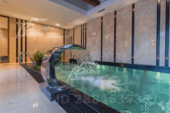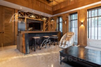 Код объекта в БД Агентства: 208-237. ВИК к/п. Меблированная усадьба премиум класса в охраняемом обжитом поселке в окружении леса. Дом из поризованного керамического кирпича, облицован эффектным немецким клинкерным кирпичом, лиственницей и гранитом. Современная архитектура, дизайнерская отделка из дорогих и натуральных материалов: травертин, массив ценных пород дерева, мрамор. Мощная инженерия: центральная приточно-вытяжная вентиляция, система "Умный дом", система доступа Intercom, резервный газовый генератор. Переливной бассейн, зона бани с комнатой отдыха с баром, бильярдная, кинозал, второй свет с большой авторской люстрой. Большие по площади патио 1-го этажа и терраса на эксплуатируемой кровле на 2-м этаже. "Парящая" широкая лестница. Мебель и оборудование ведущих производителей элитного сегмента. На участке дорогой ландшафтный дизайн - множество взрослых деревьев, цветники и огороды, теплица, автополив. Благоустроенная лесная зона со своим выходом в лес.