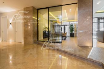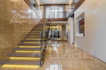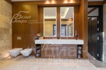 Описание внутренней отделки: в доме выполнена отделка премиального класса. Большая часть стен и часть полов отделаны натуральным травертином (всего 600 кв.м, обработка производилась в 13 циклов), комната отдыха при бане (стены, потолок) и ряд других помещений отделаны массивом дуба. Потолки над бассейном и в примыкающем помещении отделаны термически обработанной доской. В жилых комнатах - стены покрашены. Полы под плиткой - с водяным подогревом; остальной пол покрыт - инженерной паркетной доской премиального бренда Finex handcrafted floors (стоимостью 7000 руб./кв.м). Пол в спортзале - натуральный спортивный паркет. Терраса 2-го этажа (120 кв.м) - устроена эксплуатируемая кровля от фирмы Rezitrex (Германия) - гидроизоляция, утеплитель 25 см, кровельная мембрана, покрыта доской ДПК. Потолки подвесные многоуровневые с подсветкой. Светильники в доме и на улице - премиального бренда DELTA LIGHT (Бельгия). "Парящая" широкая (140 см) лестница с 1-го на 2-й этаж, с удобным подъемом - ступени из ж/б, отделаны дубом и закреплены на стену каждая по отдельности. Ограждение из тонированного закаленного стекла, поручни - дуб. Вся белая сантехника в доме - от Villeroy & Boch, смесители в душевых кабинах - с терморегуляторами, душевые перегородки фирмы премиального бренда Duka (Италия). Все коммуникации разведены под ключ. Электрика (розетки, выключатели) - Yung, трубчатые радиаторы отопления Zehnder (Германия). Установлена система защиты от протечек (при протечке водоснабжение закрывается) и контур рециркуляции горячей воды. Энергосберегающие светильники, проходные выключатели. Межкомнатные двери - из массива дерева (с фурнитурой FORMANI, Италия) сделаны на заказ по эскизам голландских архитекторов (3т.€/шт.), в цоколе - двери UNION (Италия). Мраморные подоконники. Также в доме есть центральный встроенный пылесос Beam Electrolux. Дровяной камин - с топкой гильотинного типа производство Италии, отделан мрамором. Баня с дровяной печью, которая имеет большую площадь, облицованную натуральным камнем талькохлорит, и воздушные каналы, позволяющие долго держать равномерное тепло. Стены парной отделаны канадским кедром. Комната отдыха при бане выполнена в альпийском стиле мастерами-краснодеревщиками из массива дуба (стены и потолок на высоте до 5м). Из общих помещений дома и гостевой спальни есть выход во внутренний двор (патио) площадью 110 кв.м, пол его отделан гранитом, есть маркиза с автоматически выдвигаемым тканевым верхом площадью около 30 кв.м. Терраса второго этажа из террасной доски Multi-Deck..