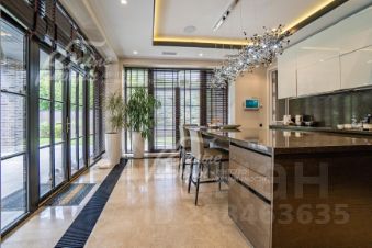 Мебель, оборудование: дом полностью меблирован элитной дорогой мебелью и техникой. Кухня с островом выполнена в современном стиле чешской компанией HANK. Имеет большое количество удобных, продуманных полок и отсеков для хранения домашней утвари, посуды и продуктов. Кухня оснащена техникой Miele последнего поколения: кофе-машина, СВЧ совмещена с пароваркой, варочная панель на 5 конфорок с возможностью объединения, духовой шкаф, посудомоечная машина (открывается по щелчку). Холодильник Liebherr. Светильник над островом производства Италия. Кладовая при кухне изготовлена мастерами по эскизам дизайнеров. Продумана до мелочей! Имеет встроенный винный шкаф и большой морозильник фирмы Liebherr. В столовой - стол с массивной столешницей из массива дерева, а стулья обтянуты натуральной кожей (и то и другое - от итальянской фабрики Cattelan) и металлическим основанием от итальянского бренда CATTELAN. . Вся корпусная мебель выдержана в едином современном стиле, изготавливалась специально для данного проекта под контролем дизайнеров и с соблюдением требований по безопасности для жилых помещений. Гардеробные комнаты выполнены компанией Mr. Doors по индивидуальным эскизам дизайнеров, занимавшихся наполнением дома. Конструктив имеет гарантию 10 лет. Большая оригинальная люстра над 2-ым светом, выполнена по индивидуальным размерам известными голландскими дизайнерами (28тыс.€). Снабжена механической системой спуска и подъема для удобства эксплуатации и ухода за ней. Полированные деревянные консоли и тумбы (столовая, холл, спальня) исполнены по индивидуальным эскизам дизайнеров в лаборатории, занимающейся производством элитной деревянной мебели. Кабинет-библиотека оформлен в брутальном стиле: оснащен массивным шка