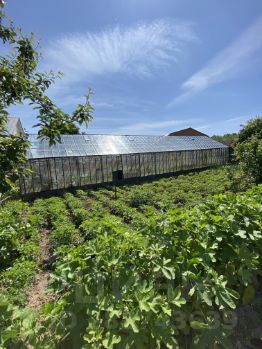 Плодоносит фруктовый сад (яблони, груши, слива, смородина, малина, клубника) всё оформлено в стиле природного сада.