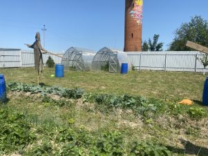 Участок ухоженный: много яблонь, груша дичка на сидр или кальвадос, слива, смородина, крыжовник, клубника, картошка, огурцы, помидоры, перцы, баклажаны, и т.п. в теплицах капельный полив. Посажено много хвойных деревьев по периметру и за забором,