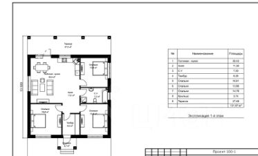 Планировка: кухня-гостинная, 3 спальни, санузел. Дом с террасой.