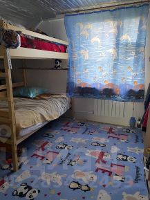 На 1 этаже дома - комната-гостиная, кухня (мойка, посудомоечная машина, микроволновая печь, газовая плита, холодильник), ванная (бойлер, ванна, туалет, стиральная машина); на 2 этаже - комната, а также дополнительное помещение со столом, креслом и мансардным окном.