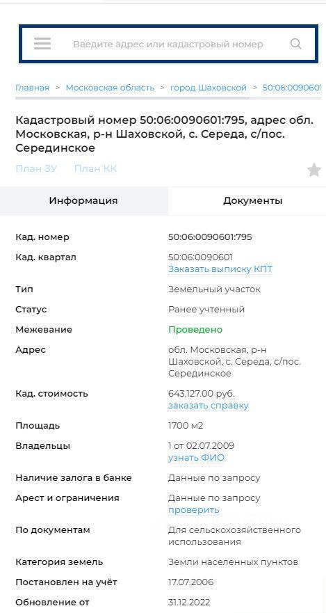 Кадастровый номер участка 50:06:0090601:*** указал продавец