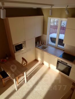На первом этаже новая кухня Evo с полным набором нового импортного оборудования Bosch и Gorenje. Под лестницей объемный шкаф со встроенным холодильником.
