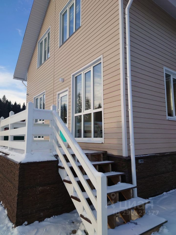 Имевшийся на участке брусовый дом с традиционной печью и камином полностью реконструирован и расширен в 2022 году. Подрядчик реконструкции Терем. Новая часть дома каркасной конструкции имеет свайный фундамент 4.5 м, утепление 200 мм на стенах, полу и потолке. Высота потолков 2.8 м на первом этаже, 2.5 м второй этаж. Внешняя отделка дома сайдинг VOX под ясень. Мягкая кровля Шинглас финская черепица.