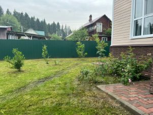 Участок выровнен, досыпан хороший грунт, все старые деревья и насаждения выкорчеваны, частично посажены молодые деревья и кустарники в соответствии с разработанным планом ландшафтного дизайна.