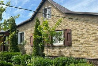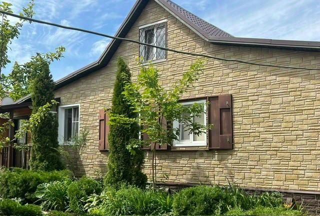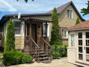 Дом двухэтажный и имеет площадь 115 кв. м. Внутри находятся 5 комнат (6/9/10/14/16 кв. м.), кухня (14 кв. м.), технические помещения: санузел, подсобка, гардеробная, кладовая. Дом так же оборудован объёмной закрытой террасой (12 кв. м.). Попасть в здание можно двумя способами: через парадный и задний вход. Дом хорошо утеплён - позволяет проживать зимой. Выстроен из бруса и каркаса, возведён на ленточном фундаменте. Крыша у дома и бани выполнена из металлочерепицы. Возможна постоянная регистрация по месту жительства.