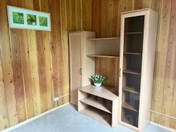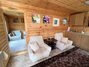 Баня представляет из себя строение из бруса и имитации бруса (26 кв. м.). Имеет в своём составе две комнаты, предбанник с душевой кабиной и парную.