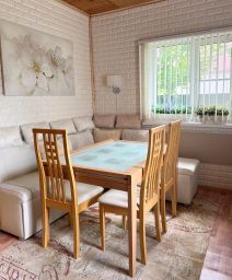 Загородный комплекс расположен в тихом СНТ, совсем недалеко от большого леса, в котором можно собирать грибы или просто гулять. В 15-ти минутах езды от участка находится живописное озеро, в котором можно купаться, плавать на лодках или ловить рыбу. В округе пролегают множество маршрутов для квадроциклов.