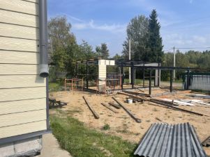Фото старые, на данный момент сделано благоустройство перед самим домом , есть планировка гаража и навеса .