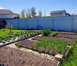 Участок ровный, сухой, ухоженный, посажен газон, сделаны дорожки. Имеется сад с плодовыми деревьями( яблони, груши, сливы, черешня) кустарниками( смородина, крыжовник, жимолость, малина, голубика), грядки, теплица.
