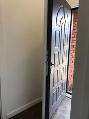 В доме 2 отдельных входа с 2 кухнями, 3 санузлами, 2 помещениями гаража.