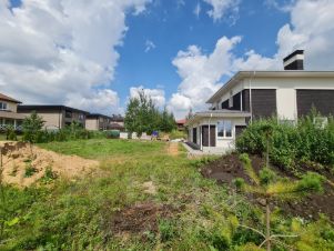 Благодаря грамотному расположению дома на участке правильной формы остаётся много свободного места. Можно посадить собственный сад, построить беседку с зоной барбекю или детскую площадку. Построен гараж для 2-х автомобилей.