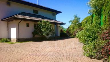 Участок 27 соток ( две части 1500 кВм + 1200кВм) благоустроен, выровнен, застелен сеткой от кротов и сорняков. Площадки вымощены бетонной тротуарной плиткой ( перед домом возможна гостевая парковка на 6 а/м), дорожки выполнены декоративным камнем, стоки выведены.