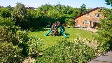 На участке - два жилых дома, обустроенная, безопасная детская площадка с двумя горками и качелями, две постройки ( мангальная зона, домик сторожа/ с вольером для собак).