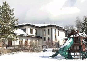 Основной дом 462кВ.м - без внутренней отделки, все коммуникации проведены, котельная полностью оборудована Baderus, высота потолков 3,75м, 8 комнат, 3 с/у: один с/у располагается в большой спальне