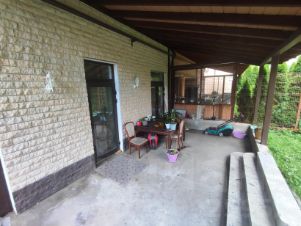 На 1-ом этаже: Кухня совмещена с гостиной, просторная гардеробная комната, санузел, бойлерная, подвал, два выхода на открытую террасу с газонной огороженной лужайкой.