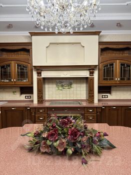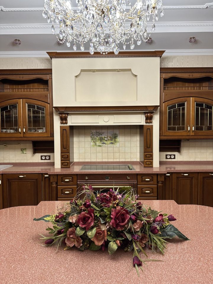 Интерьер выполнен в классическом стиле с использованием очень дорогих натуральных строительно-отделочных материалов. Итальянская мебель, все освещение, люстры и подсветки с кристаллами Swarowski.